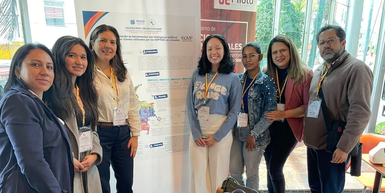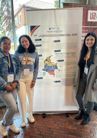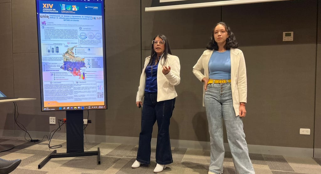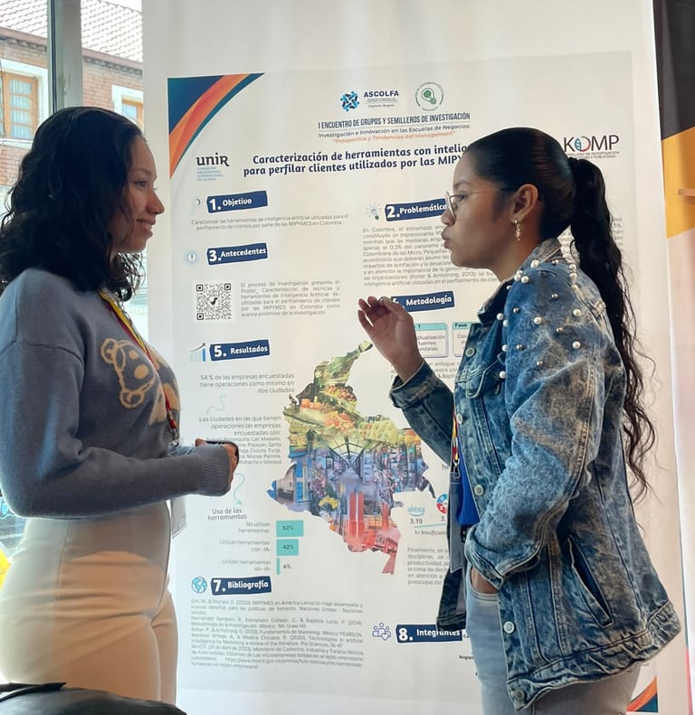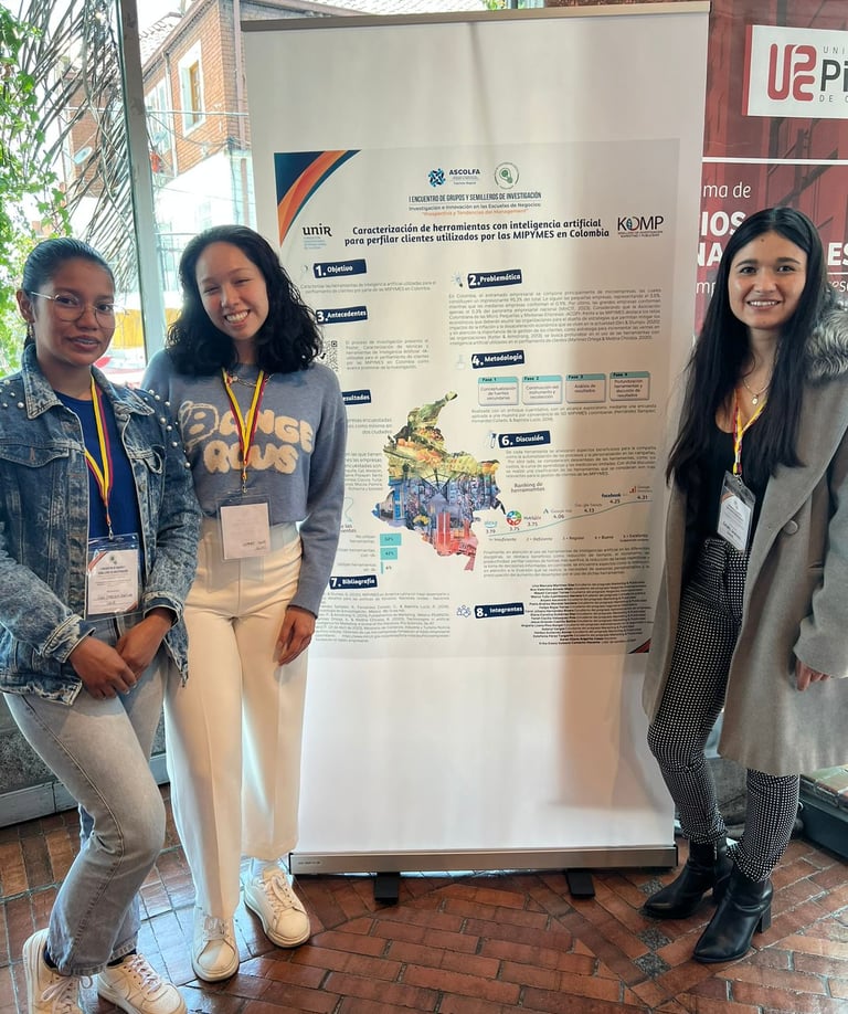 Lina Marcela Martínez Días, del programa de pregrado de Marketing & Publicidad, y Ana Valentina Amado Mejía, del programa de pregrado de Negocios Internacionales, representaron a los miembros del Semillero KOMP en la presentación del póster titulado "Caracterización de herramientas con inteligencia artificial para perfilar clientes utilizadas por las MIPYMES en Colombia"