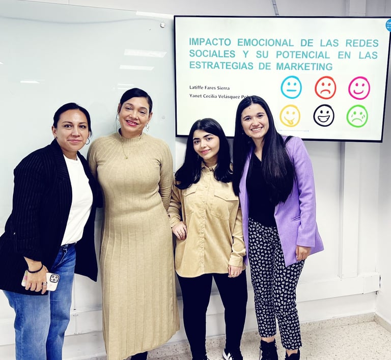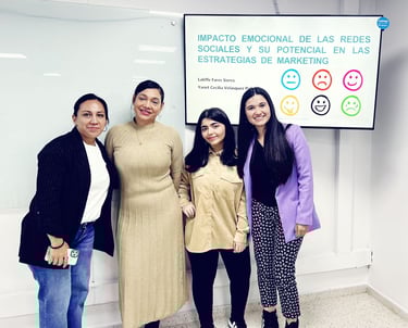 Las estudiantes Latiffe Fares Sierra y Yanet Cecilia Velásquez con su ponencia titulada "Impacto Emocional de las Redes Sociales y su Potencial en Estrategias de Marketing"