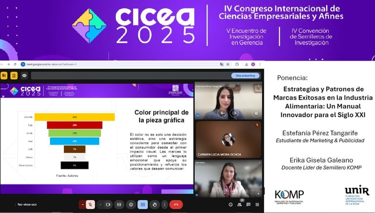 Estefanía Pérez Tangarife con su ponencia titulada "Estrategias y Patrones de Marcas Exitosas en la Industria Alimentaria: Un Manual Innovador para el Siglo XXI"